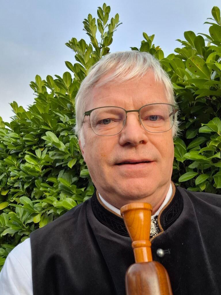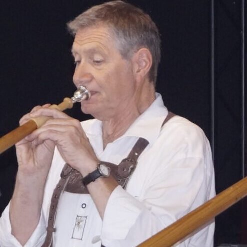 Hubert Köllejan, Bert genannt, spielt seit Gründung der Stadtgarde Wesseling im Jahr 1977 Posaune; inzwischen bei den Musikfreunden Urfeld. Er war schnell zu begeistern, im Rheinland eine Alphorngruppe zu gründen. Bert spielt bei uns im unteren Register.
